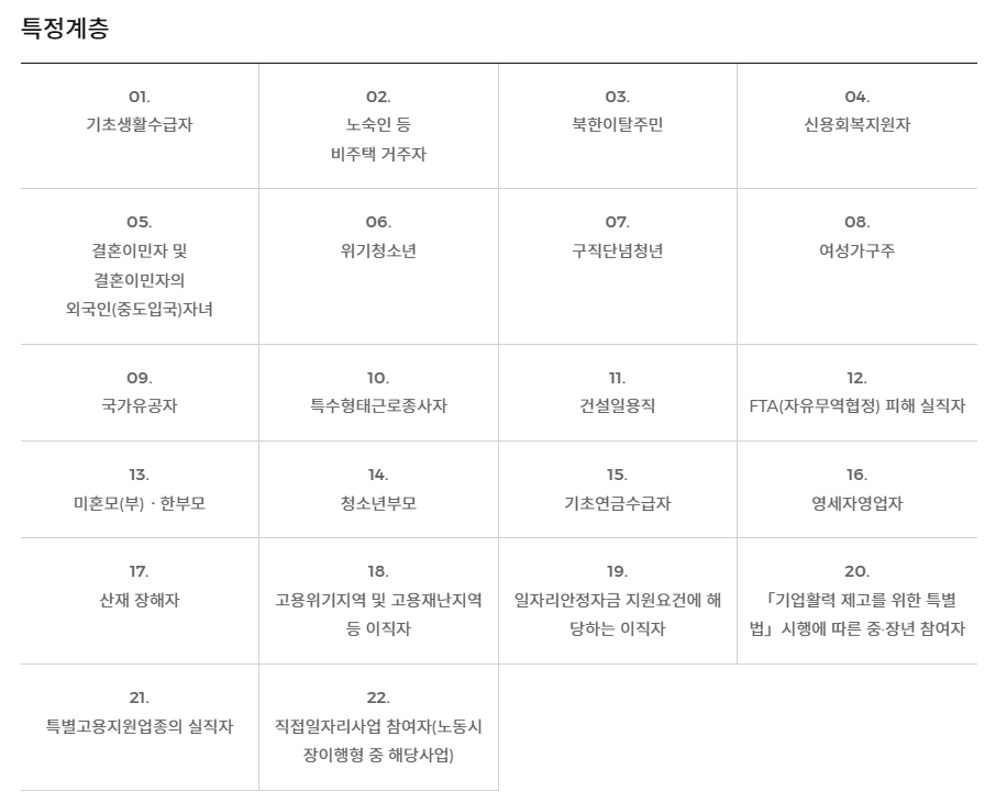 - 특정 취약계층 증명서류: 관련 추천서, 확인서